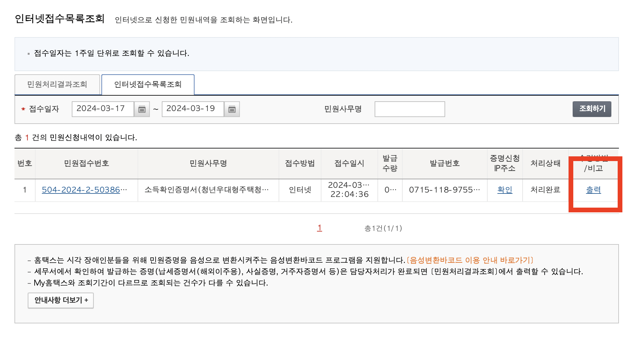 소득확인증명서 발급받기