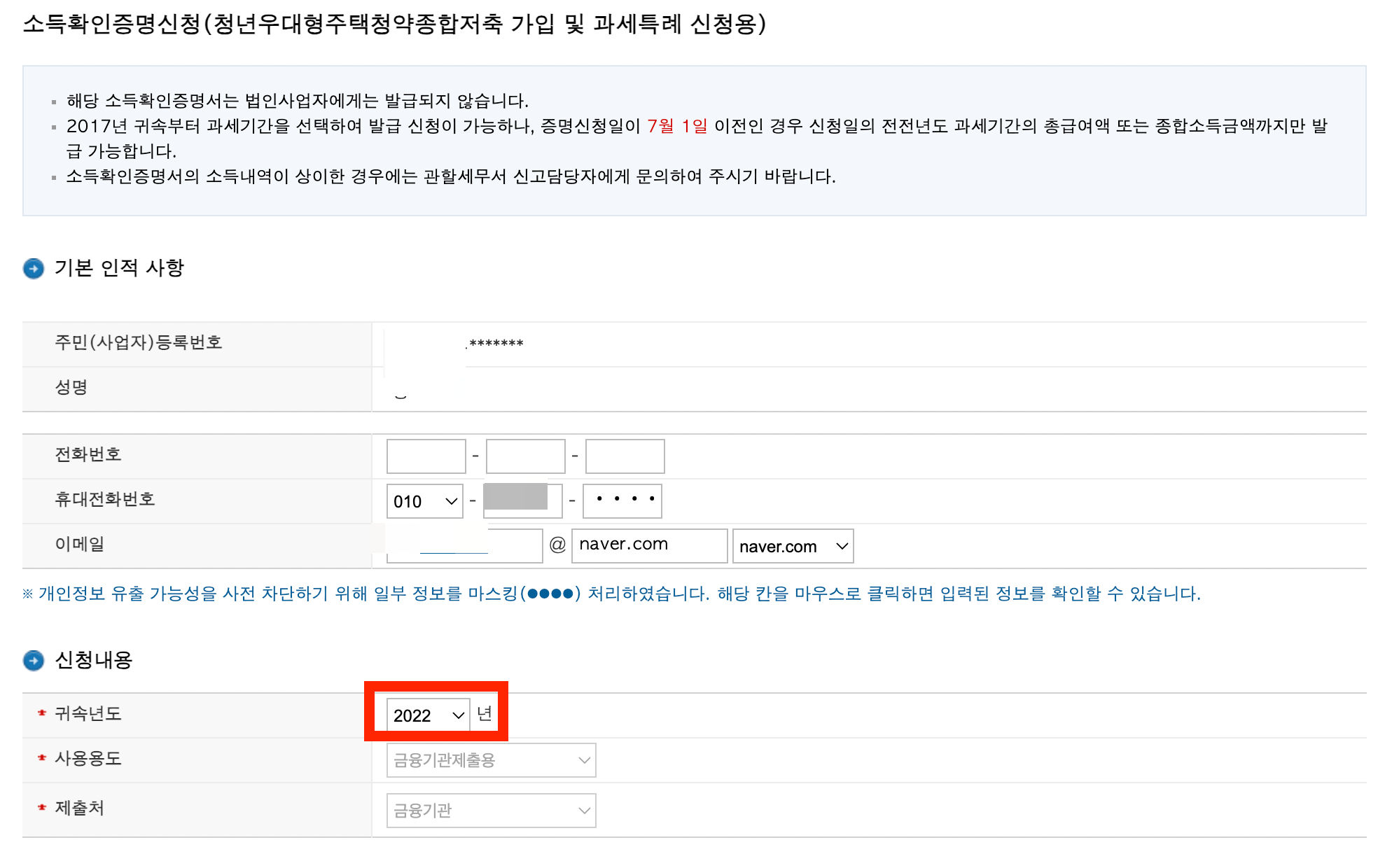 신청화면으로 접속하시면 귀속 연도가 나오는데요. 만약 본인의 주택드림 청약통장 신청시기가 1~6월 사이라면 전전 연도인 2022년도를 선택하시면 되겠습니다. 자세한 사항은 아래 포스팅 참고해 주세요.